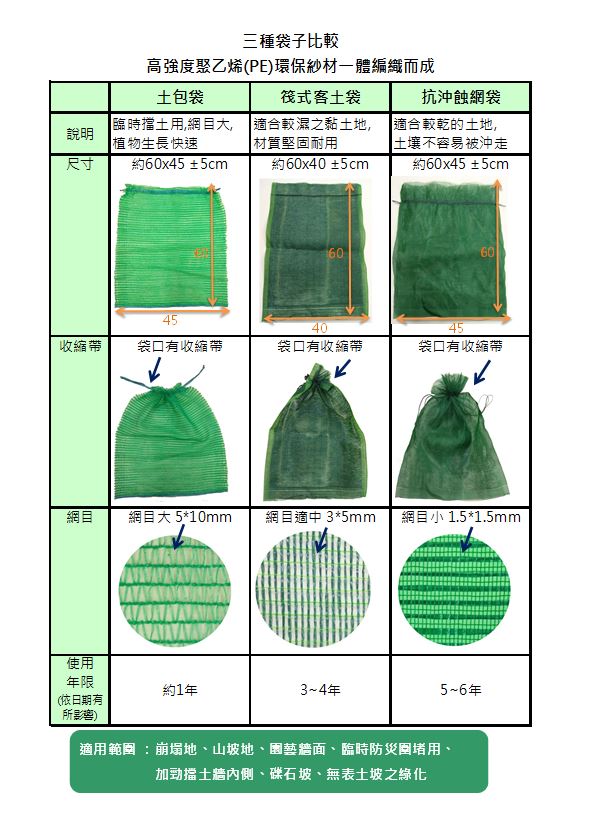 臨時擋土 | 表面可種植綠化 | 防土壤流失 | 適合坡地 | 園藝 | 加勁 | 擋土牆 | 裝土