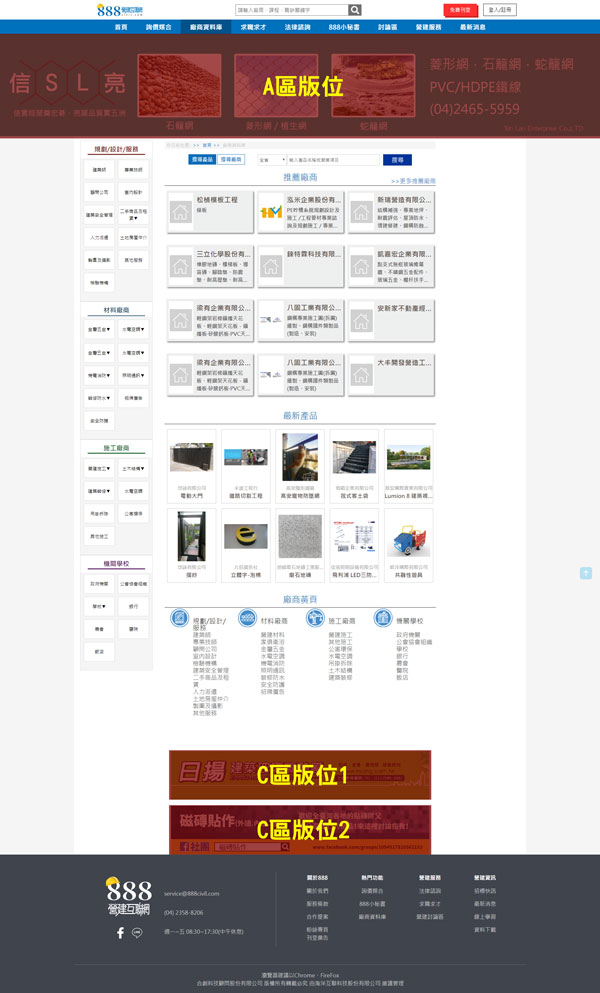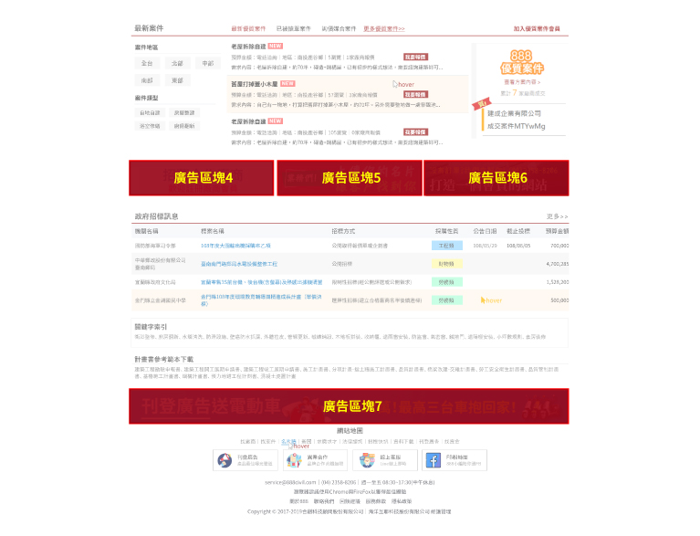 可參考888營建互聯網 廣告刊登介紹 https://www.888civil.com/banner#tab